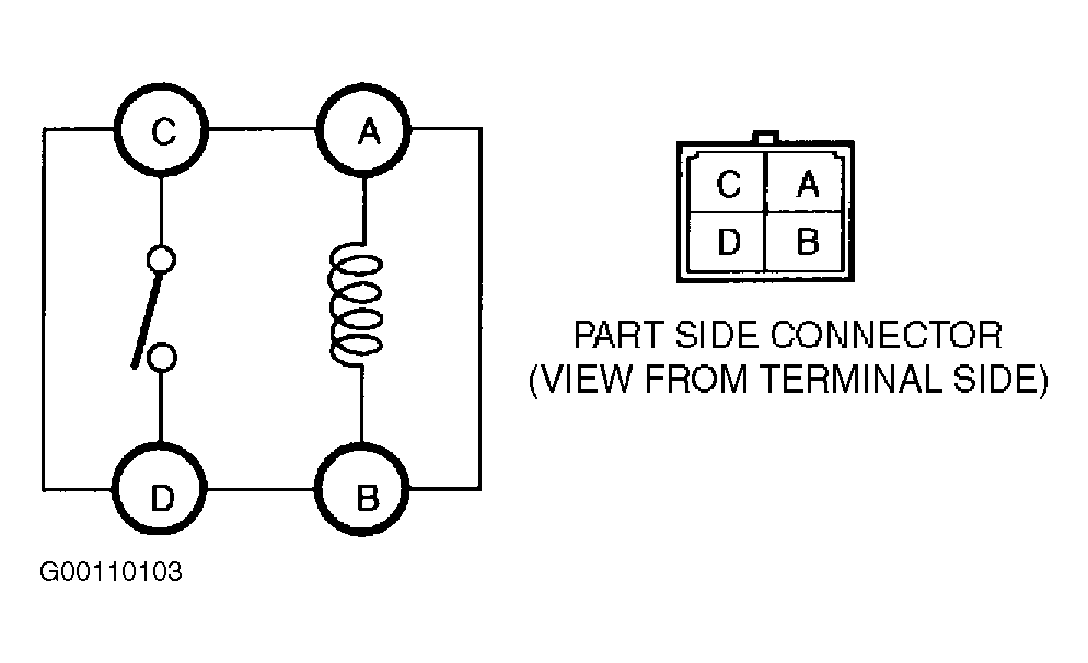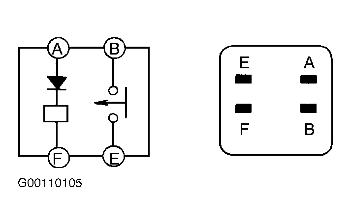 - Using fused jumper wires, apply battery voltage to main relay terminal "A" and ground terminal "B" (terminal "F" on 626 or E" on MPV). Continuity should be present between main relay terminals "C" and "D" (terminals "B" and "E" on 626). See Fig 1 -Fig 3 . If continuity is not as specified, replace main relay.