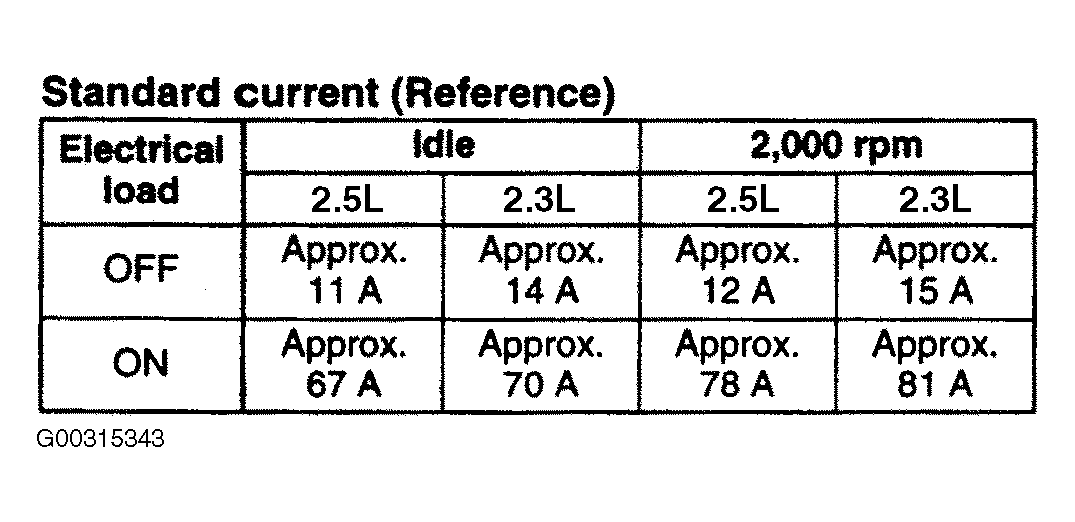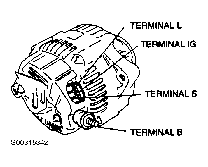 - Measure the current at terminal "B" using an ammeter. See Fig 2 and Fig 3 . If not as specified, replace the generator.