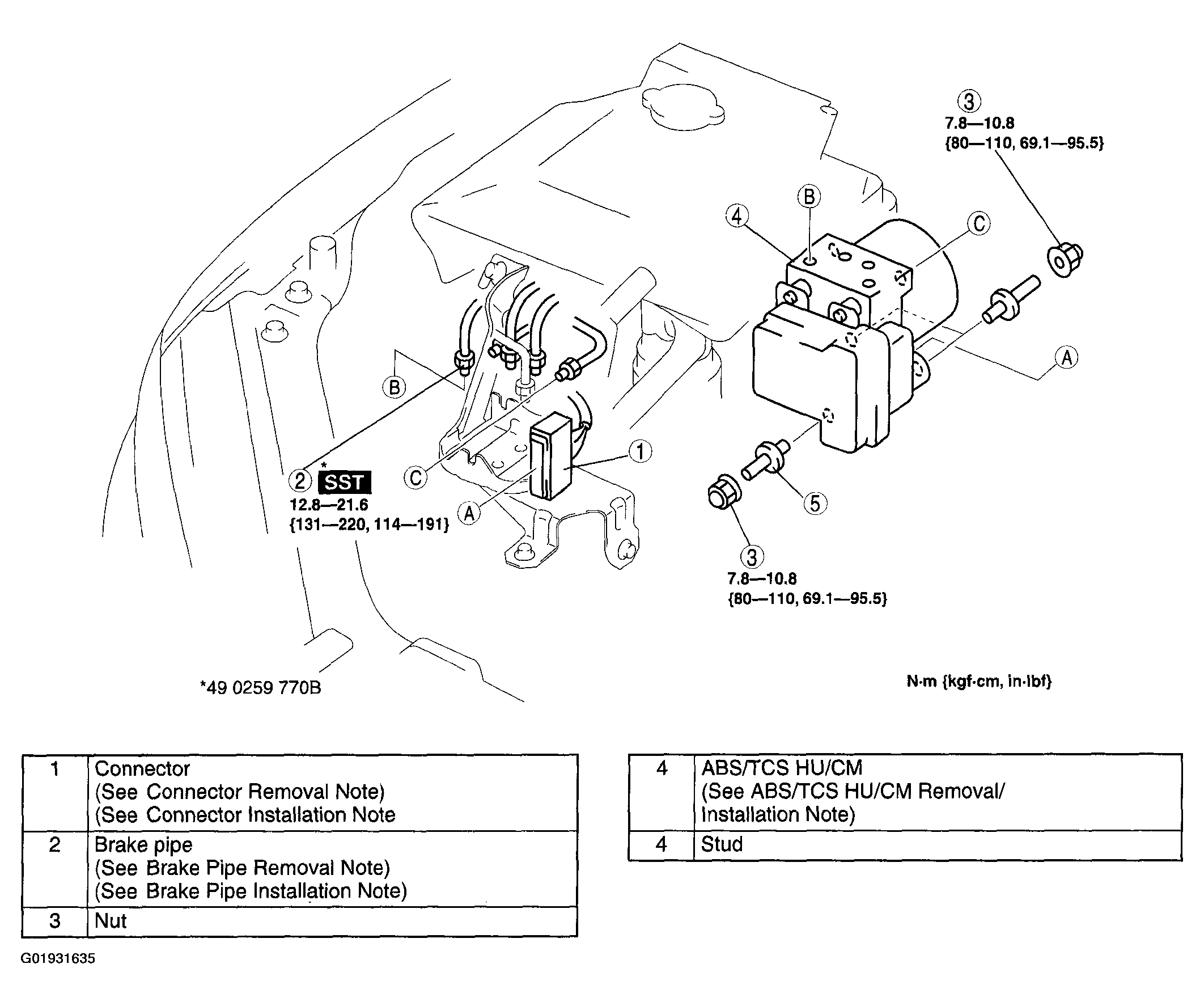 - When replacing the ABS/TCS HU/CM, the configuration procedure must be done before removing the ABS/TCS HU/CM. If the configuration is not completed before removing the ABS/TCS HU/CM, TCS will not work properly after installation of the ABS/TCS HU/CM.