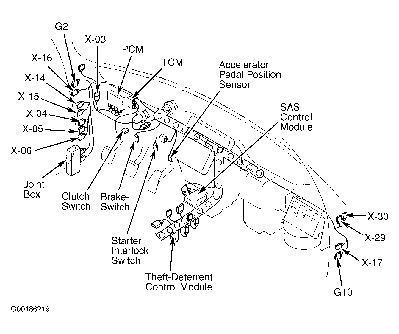 | SAS Control Module | Behind lower center of dash. See Figure. |