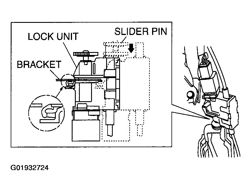 - With the slider pin pressed, slide the lock unit to fix the lock unit hook into the bracket hole securely as shown in Fig 3