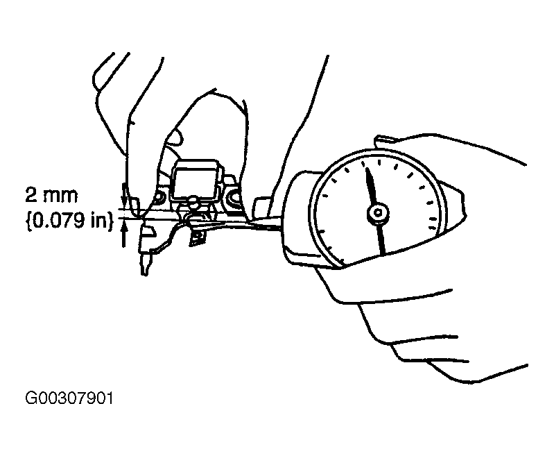 Measure the force of the brush spring using a spring pressure gauge. Read the spring pressure gauge at the brush tip projection of 0.079" (2 mm). See Fig 1. Replace as necessary. See GENERATOR SPECIFICATIONS .