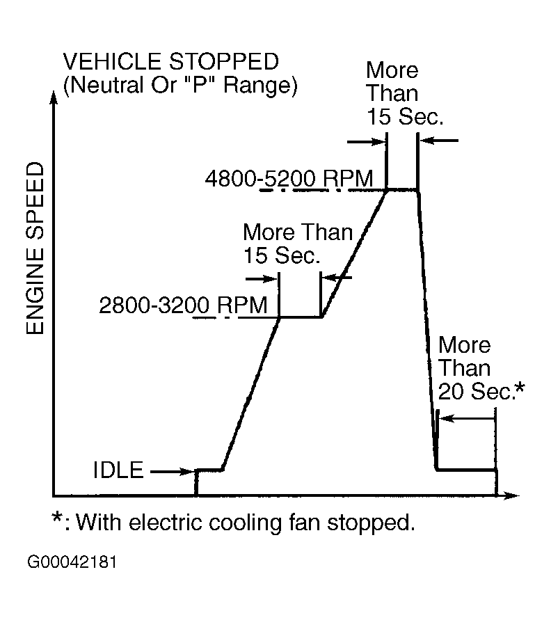 Idle engine for more than 20 seconds after cooling fan stopped. If possible, use scan tool to monitor RPM PID and cooling fan status during this procedure.