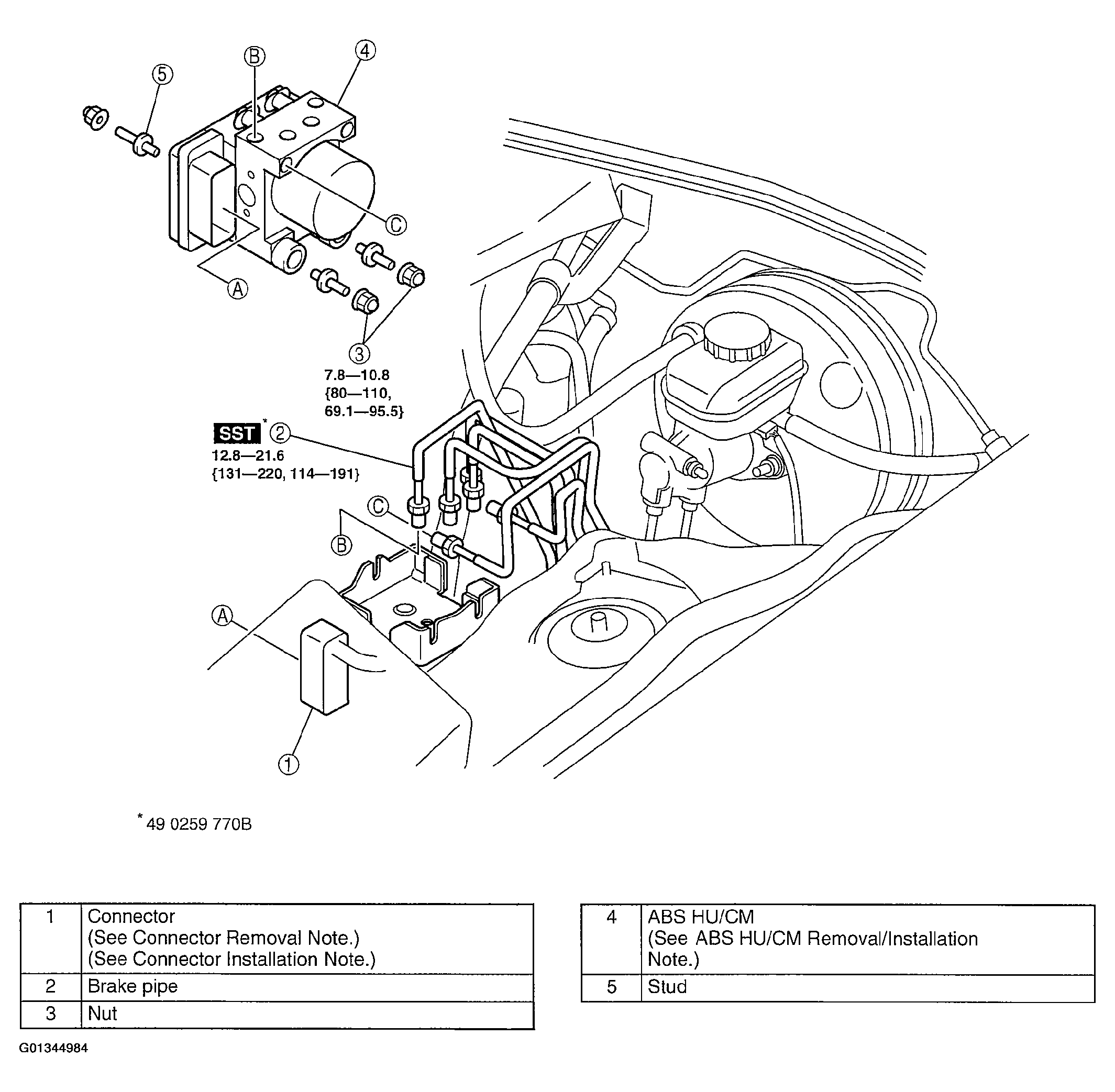- The internal parts of the ABS HU/CM could be damaged if dropped. Be careful not to drop the ABS HU/CM. Replace the ABS HU/CM if it is subjected to an impact.