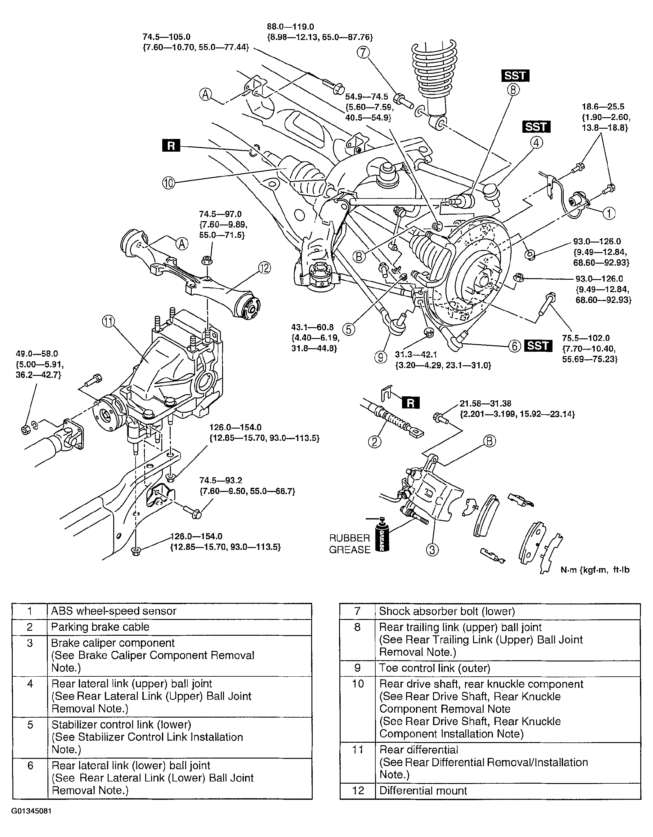 - Performing the following procedures without first removing the ABS wheel-speed sensor may possibly cause an open circuit in the wiring harness if it is pulled by mistake. Before performing the following procedures, remove the ABS wheel-speed sensor (axle side) and fix it to an appropriate place where the sensor will not be pulled by mistake while servicing the vehicle.