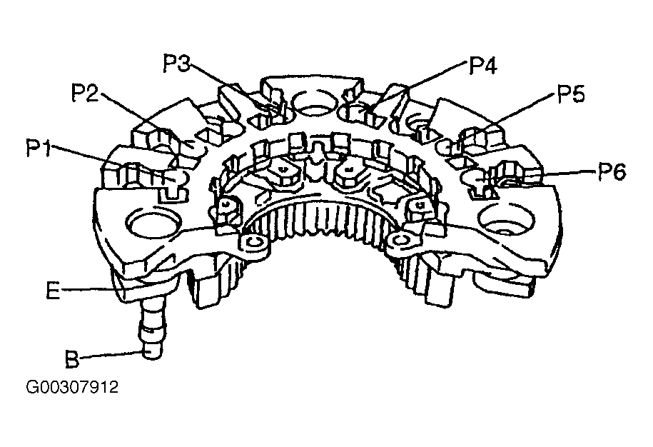 Inspect for continuity of the diodes using an analog circuit tester. See Fig 1. See RECTIFIER DIODE CONTINUITY . Replace rectifier if not as specified.