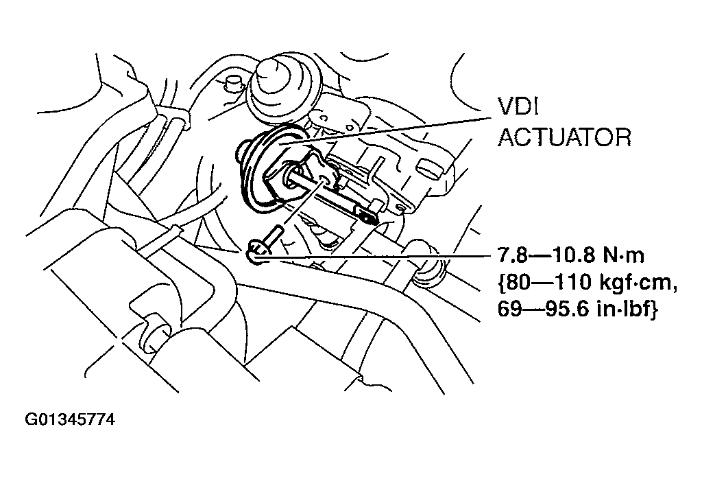 - Inspect the variable dynamic effect intake (VDI) actuator. (See VARIABLE DYNAMIC EFFECT INTAKE-AIR (VDI) ACTUATOR INSPECTION .)