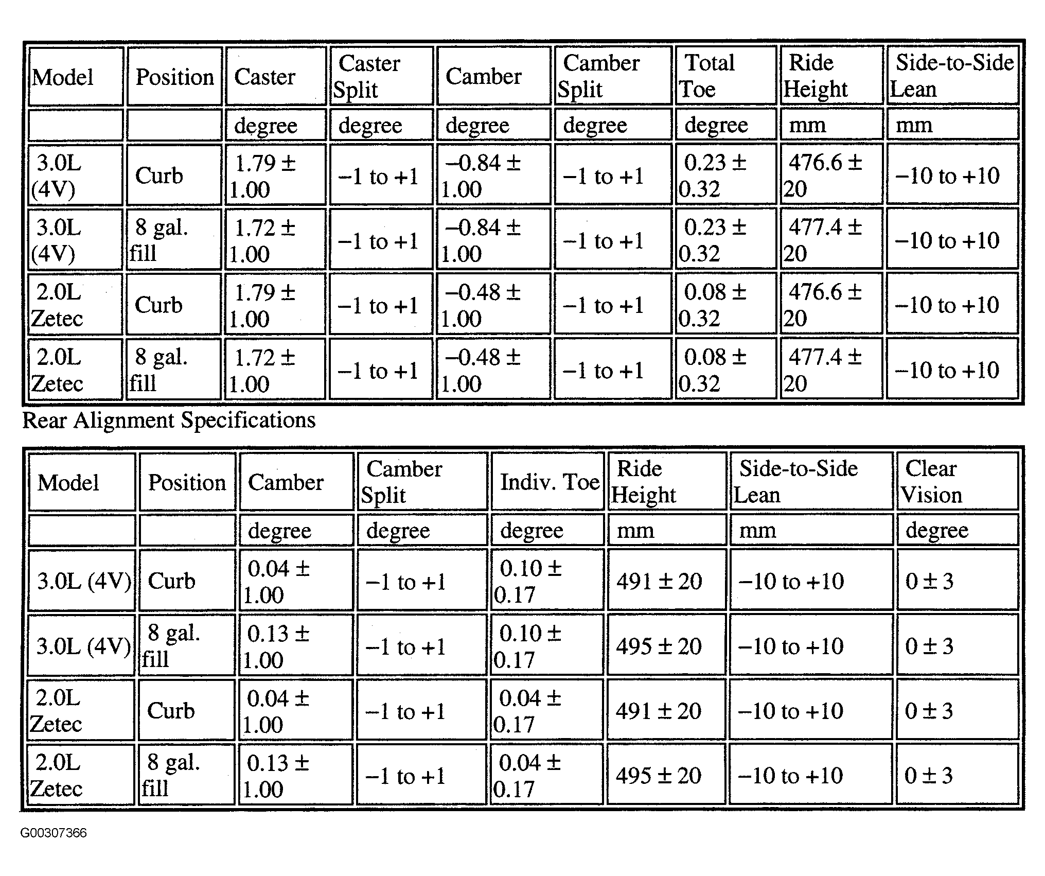 Wheel Alignment Specifications