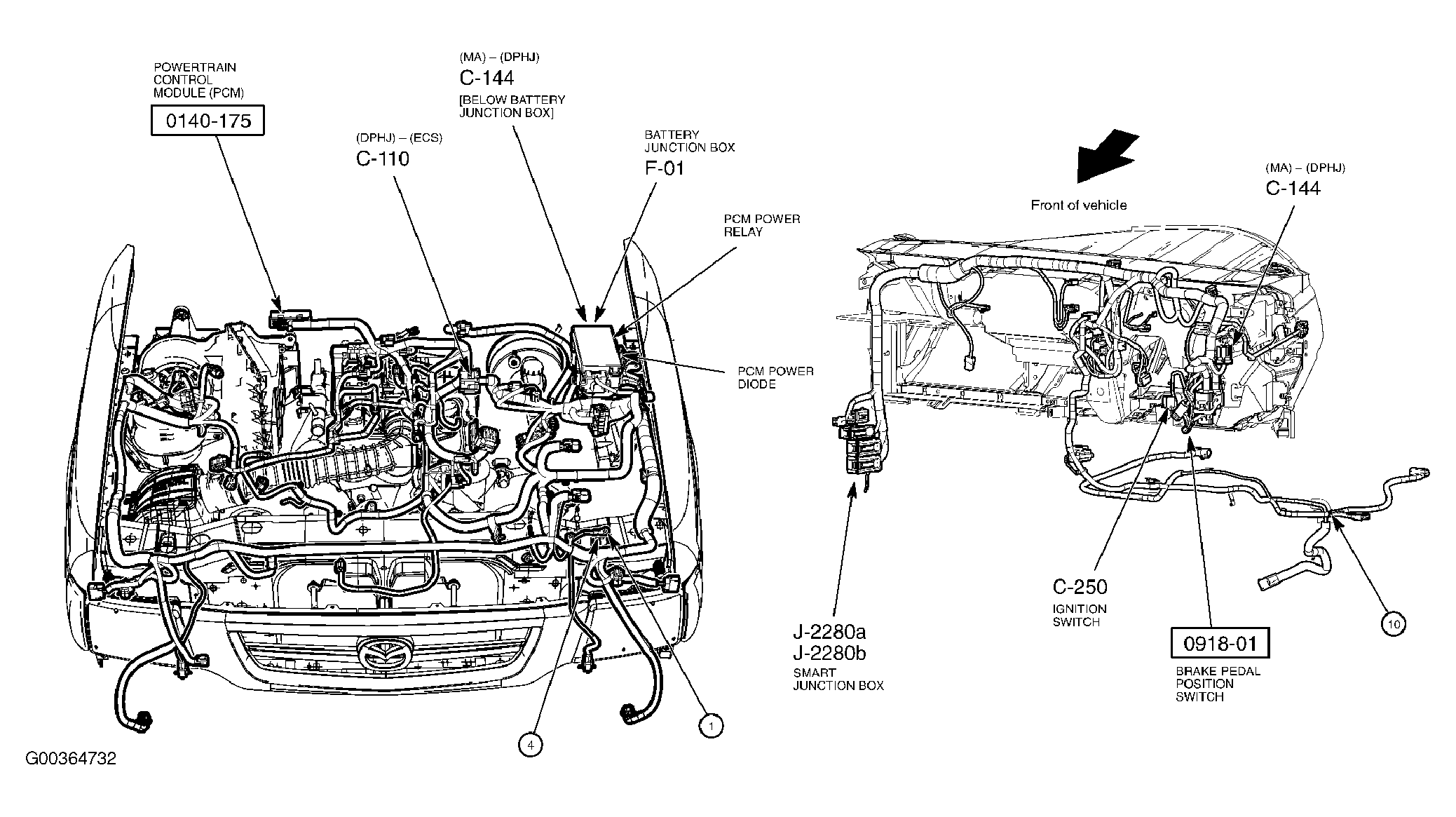 Powertrain Control Module (PCM) (2.3L) At right rear of engine compartment, through firewall. See Figure .