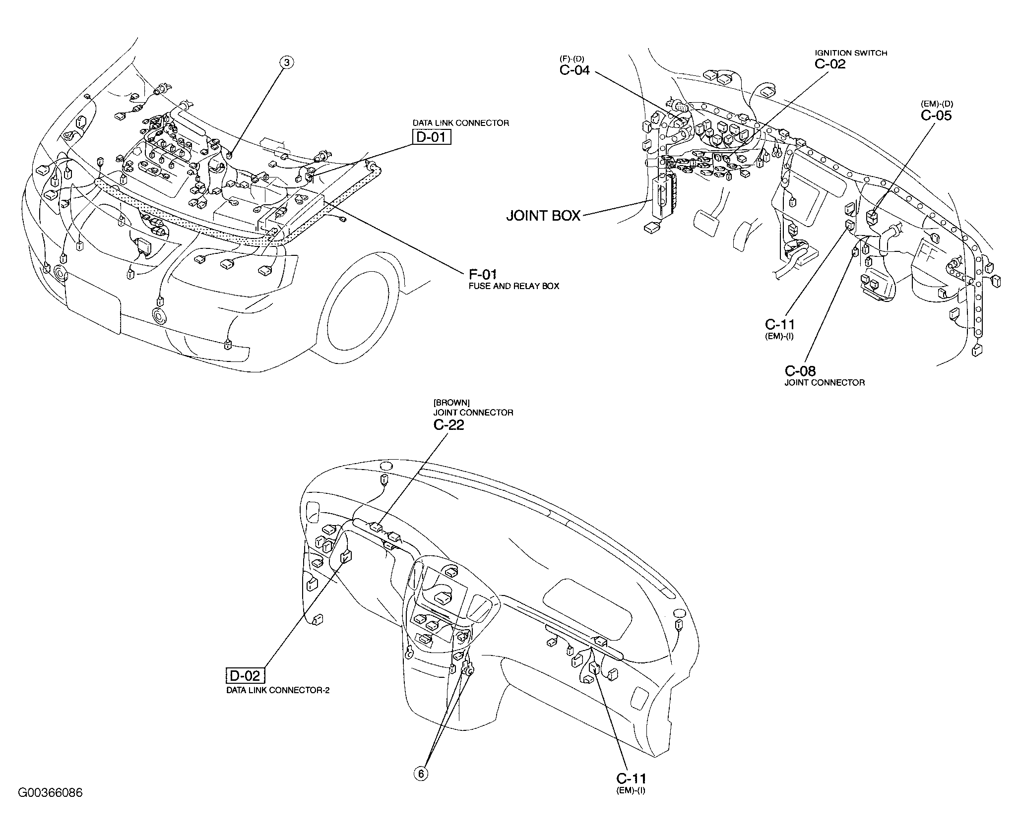 Joint Box At left kick panel. See Figure .