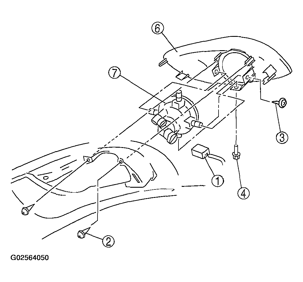 Component/Step No. Component Description 1 Connector 2 Screw 3 Screw 4 Bolt (Sports) 5 Bracket (Standard) 6 Front Fog Light Cover (Sports) 7 Front Fog Light (1) See Fig 2. - Install in the reverse order of removal.