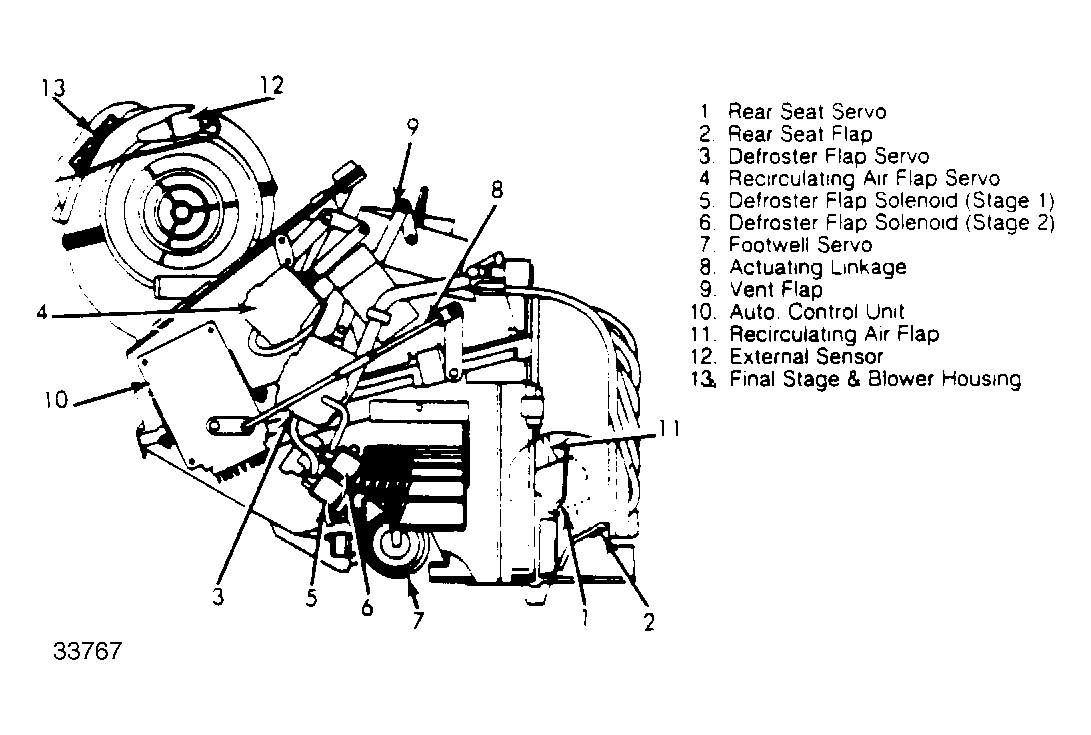 | A/C (Auto) Control Unit | On left side of blower housing. See Figure. |