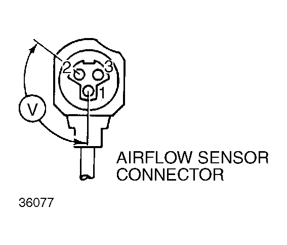 - With engine off and ignition on, set multimeter to volts scale. Check voltage at terminals No. 1 and 2 as well as terminals No. 2 and 4 on airflow sensor connector. Voltage reading should be 5 volts. If voltage reading is 5 volts, testing is complete. If voltage reading is not 5 volts, repair open circuit. If no open circuit is found, replace EDS control unit. See Fig 1