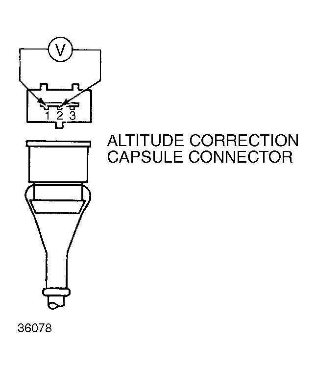 1. Turn engine off. Steering should be in lock "2" position. Disconnect connector from altitude correction capsule. Connect multimeter and set to volt scale.