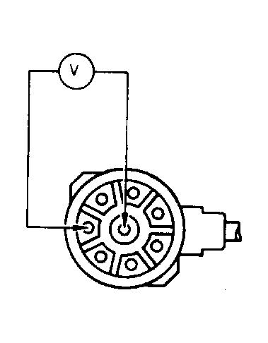- With engine off, disconnect trimming plug from socket. Steering should be in lock "2" position. Connect multimeter and set to volt scale. Probe and check voltage as shown. See Fig 1 . Voltage reading should be 5 volts.