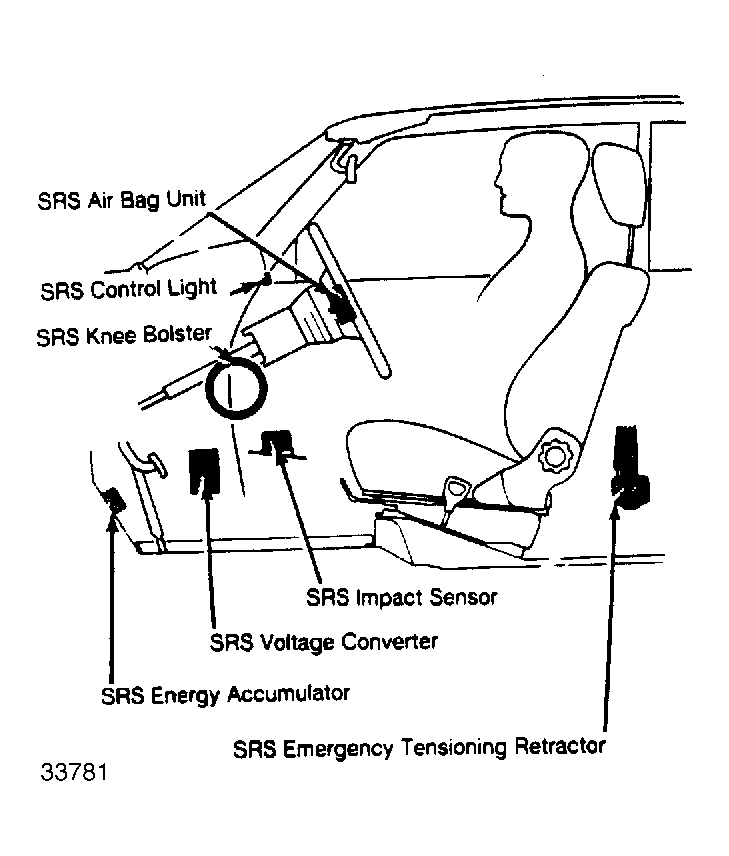 | SRS Control Unit/Sensor | Under center console, below dashboard. See Figure . | |
