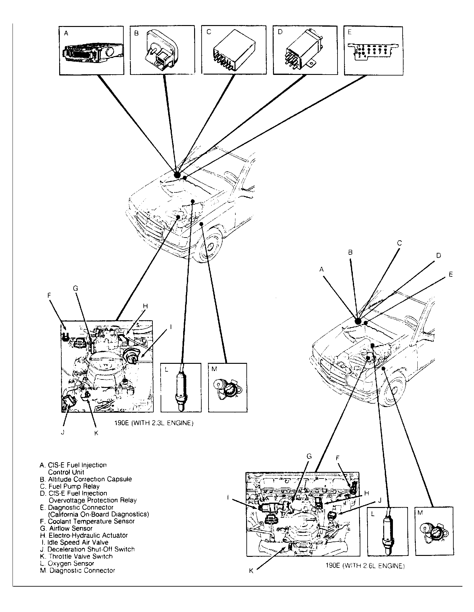 | CIS-E Fuel Injection Control Unit (See View "A") | On right side of firewall, near battery. See Figure . |