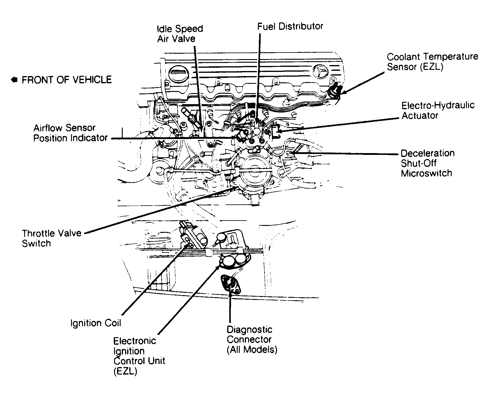 | Electronic Ignition Control Unit (EZL) | On left front inner fender panel, next to diagnostic connector. See Figure & Figure . | |