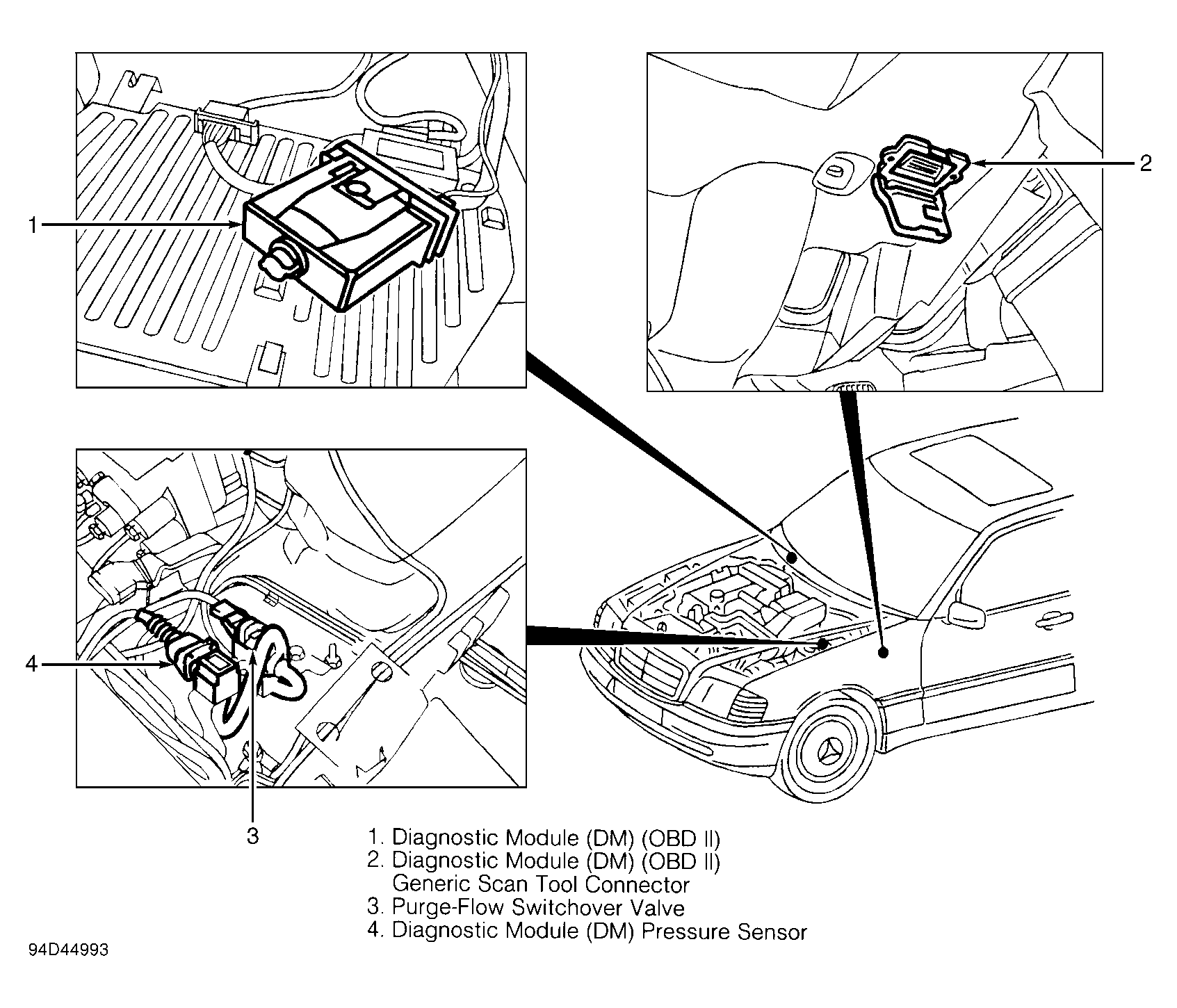 | Diagnostic Module (OBD II) | Right side under dash. See Figure. |