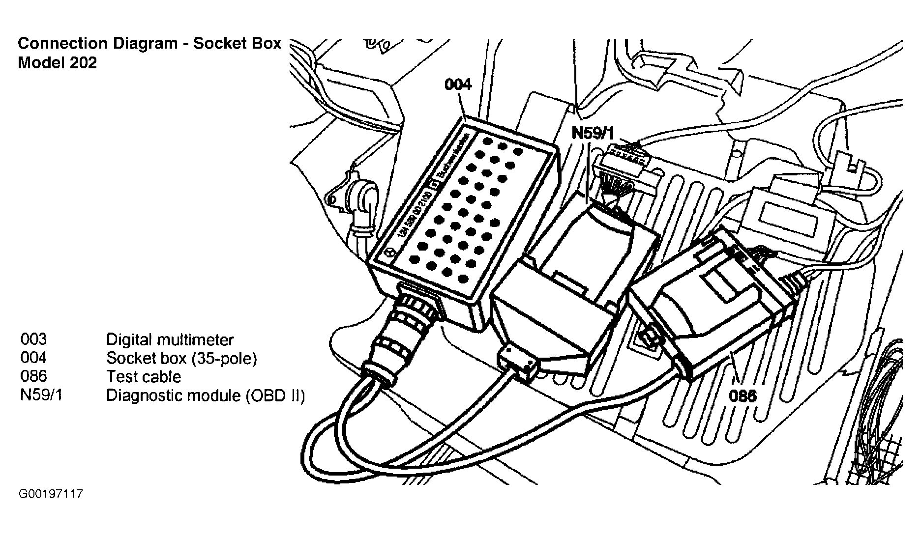 - Connect socket box with test cable according to connection diagram. See Fig 1 or Fig 2 .