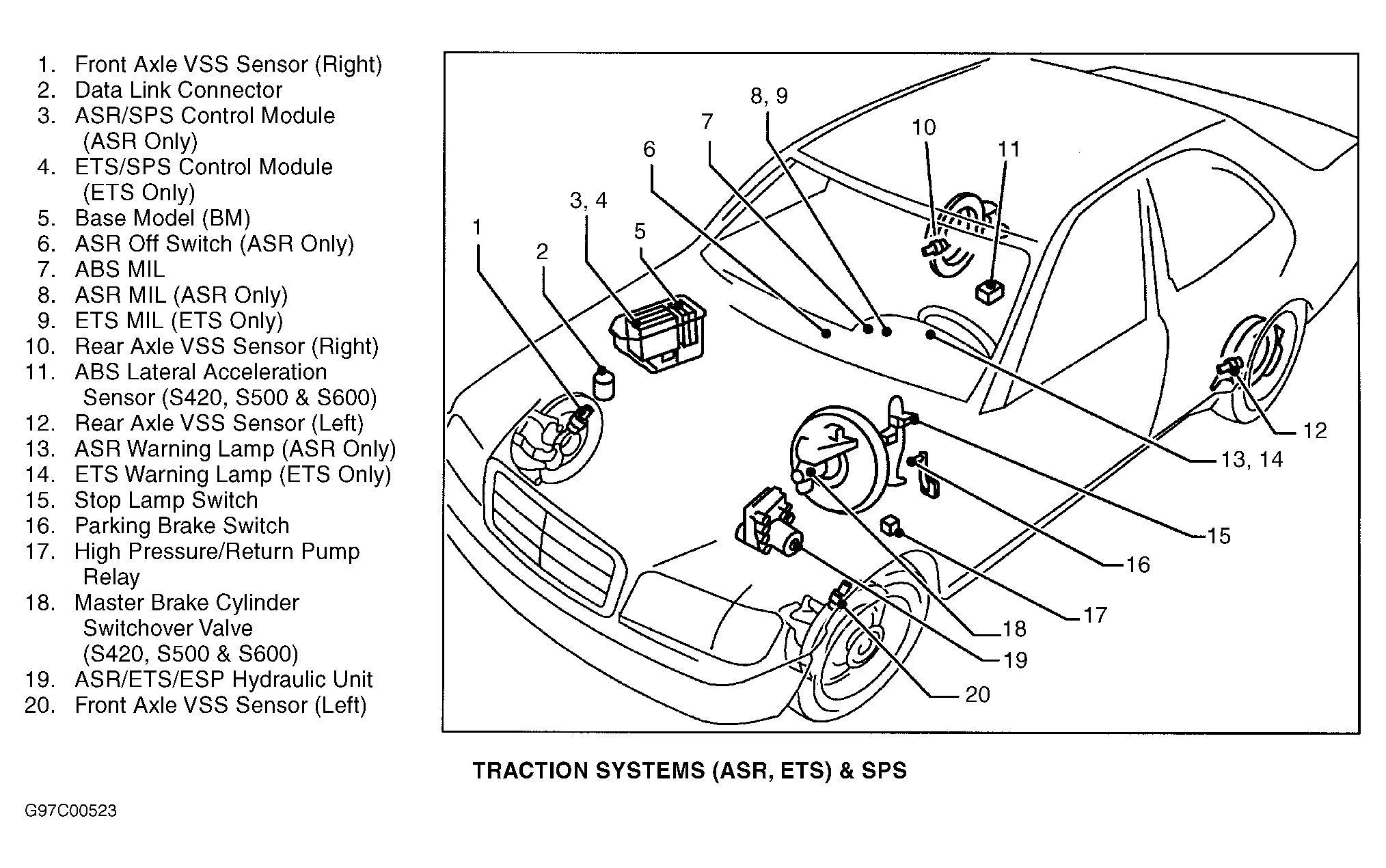 | ETS/SPS Control Module (ETS Only) W/ Traction Systems (ASR, ETS) & SPS | In module box, on right rear of engine compartment. See Figure . |