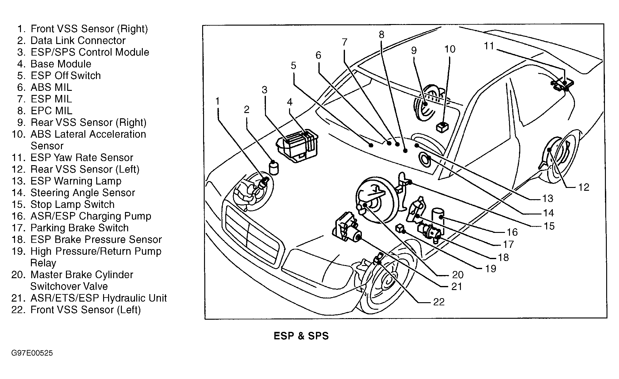 | ESP/SPS Control Module (ESP & SPS) | In module box, on right rear of engine compartment. See Figure . |