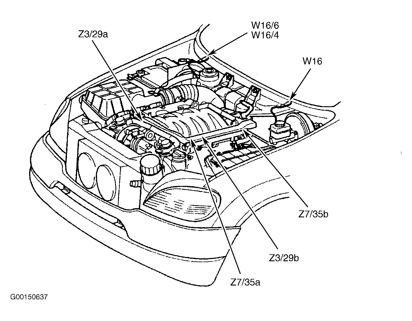 | Z7/35a | In engine harness, at top left side of engine. See Figure . |