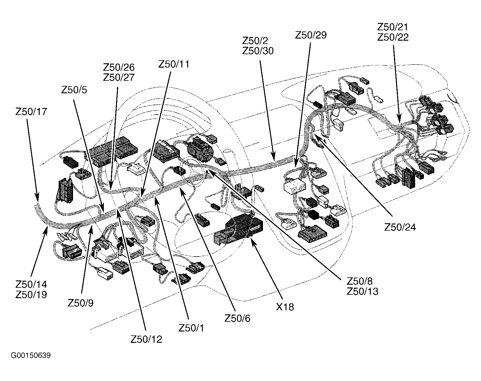 | Z50/18 | In dash harness, near breakout to data link connector. |