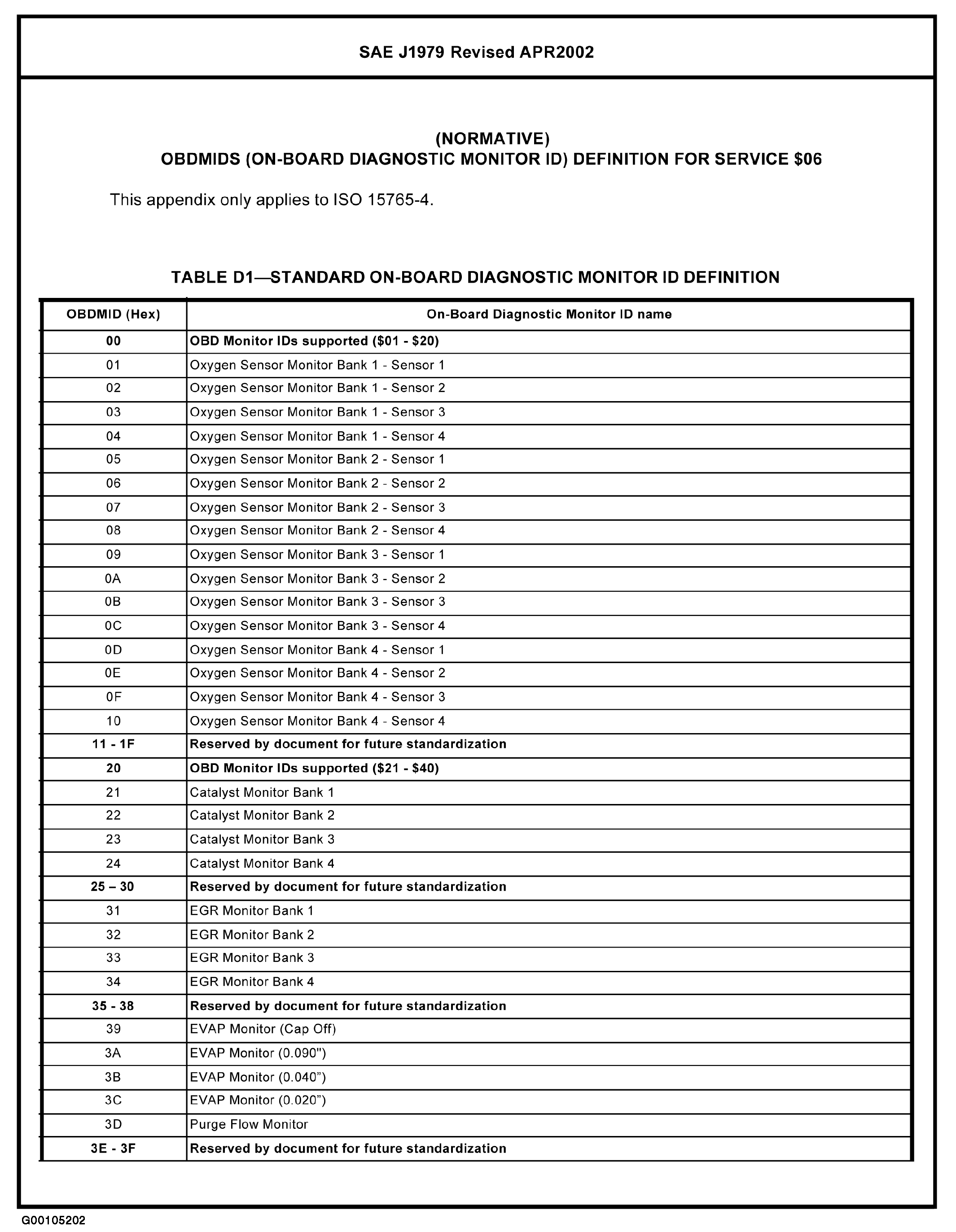 Mode 6 data is not available for all models. On-board diagnostic monitor ID definition for mode 6 applies to all modes. See Fig 1-Fig 12