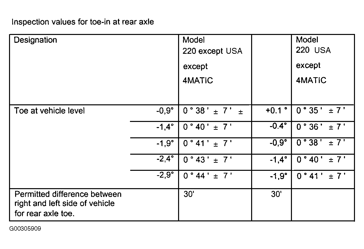 Fig 10: Check & Adjustment Values For Toe-In At Rear Axle (4-Matic)
