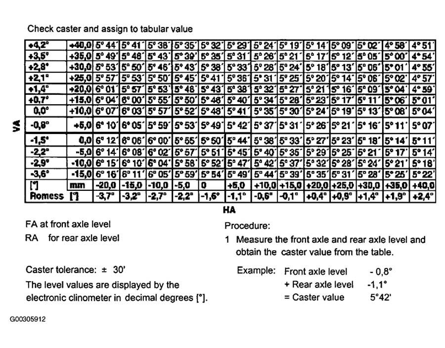 Fig 1: Check Adjustment Values For Front Caster & Assign Tabular Value (4-Matic)