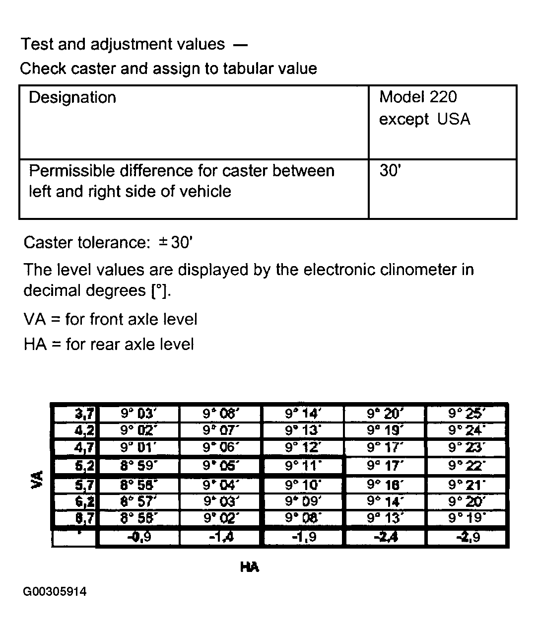 Fig 2: Check Adjustment Values For Front Caster Assign Tabular Value (Except USA)