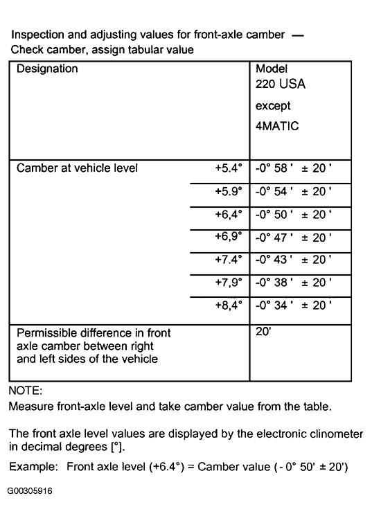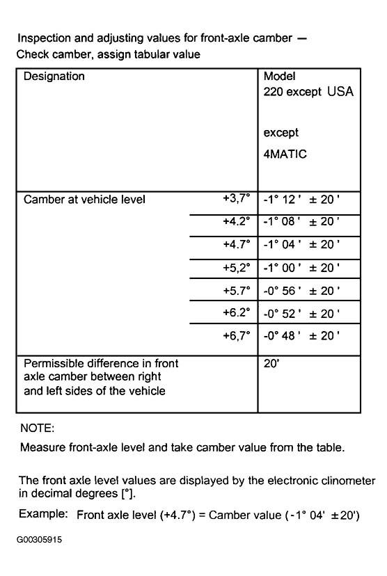 Fig 4: Check & Adjustment Values For Front Axle Camber At Vehicle Level (4-Matic)