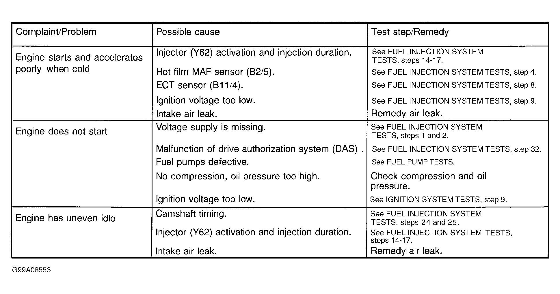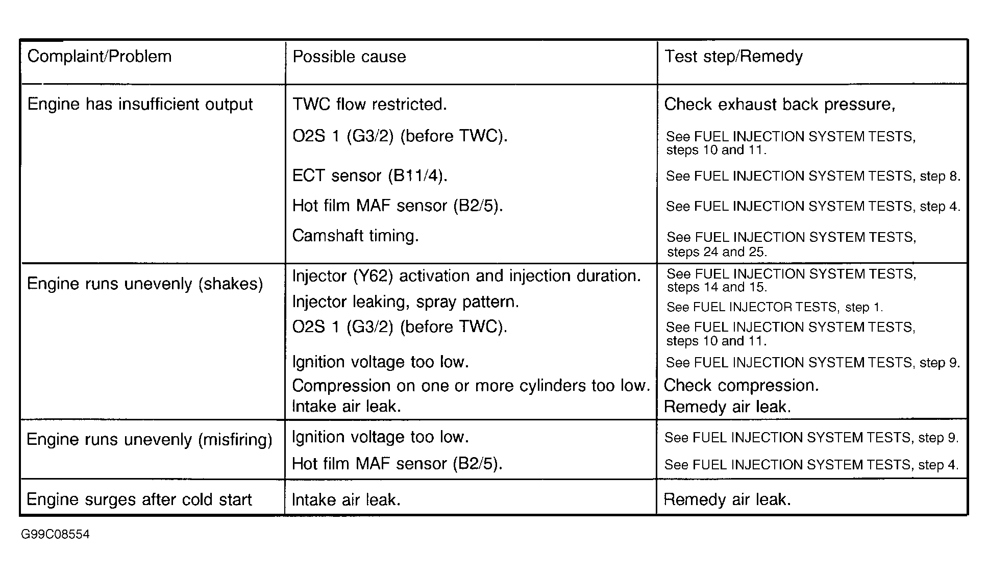 - Engine starts and accelerates poorly when cold. See Fig 1.