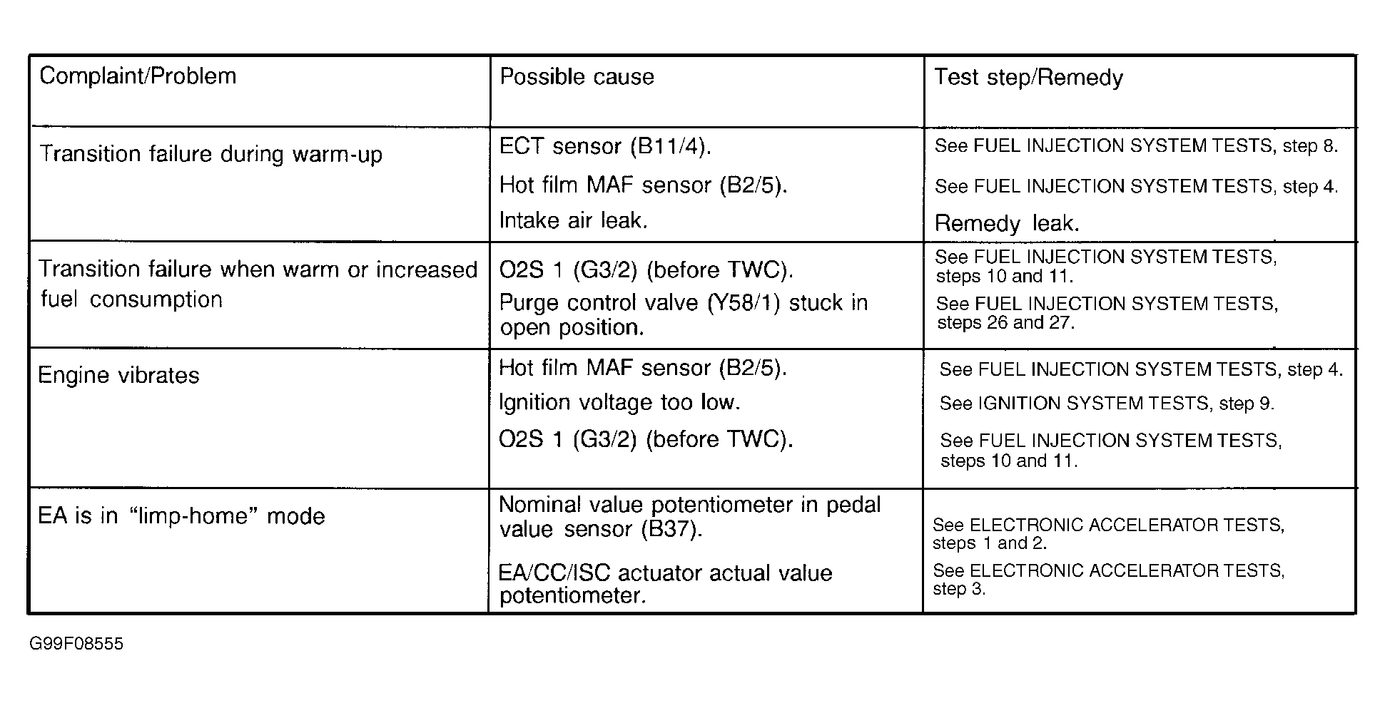 - Transition failure when warm or increased fuel consumption. See Fig 3.
