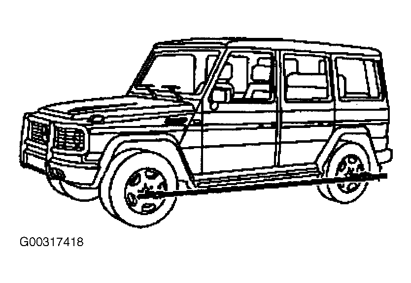 Put front wheel in straight ahead position. Position measuring device from wheel center to wheel center, measure the distance between the front and rear wheels. See Fig 1 .