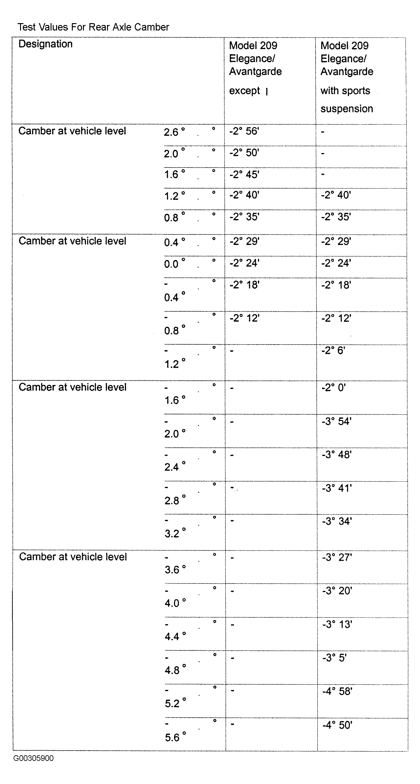 | Elegance/Avantgarde With MB Sports Suspension | 1° 40' | +/-30 | ||||||||||||