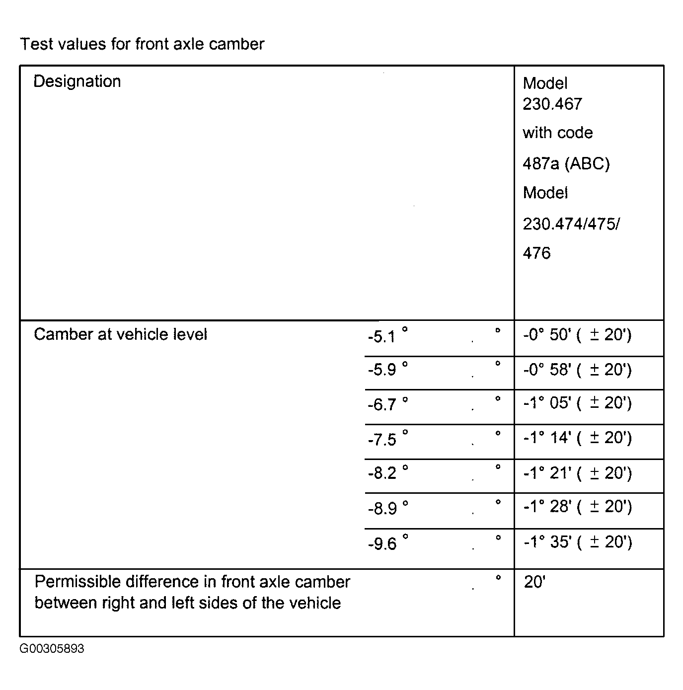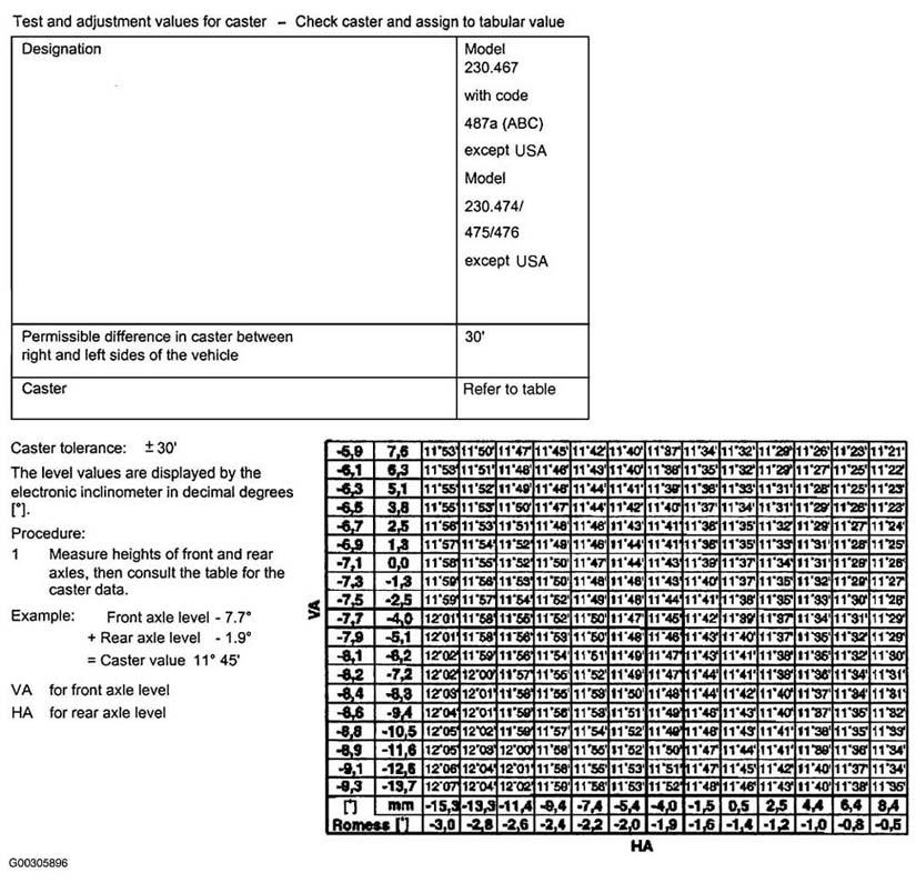 Fig 2: Check & Adjustment Values For Front Caster Assign Tabular Value (Except USA, 230.474/.475/.476)
