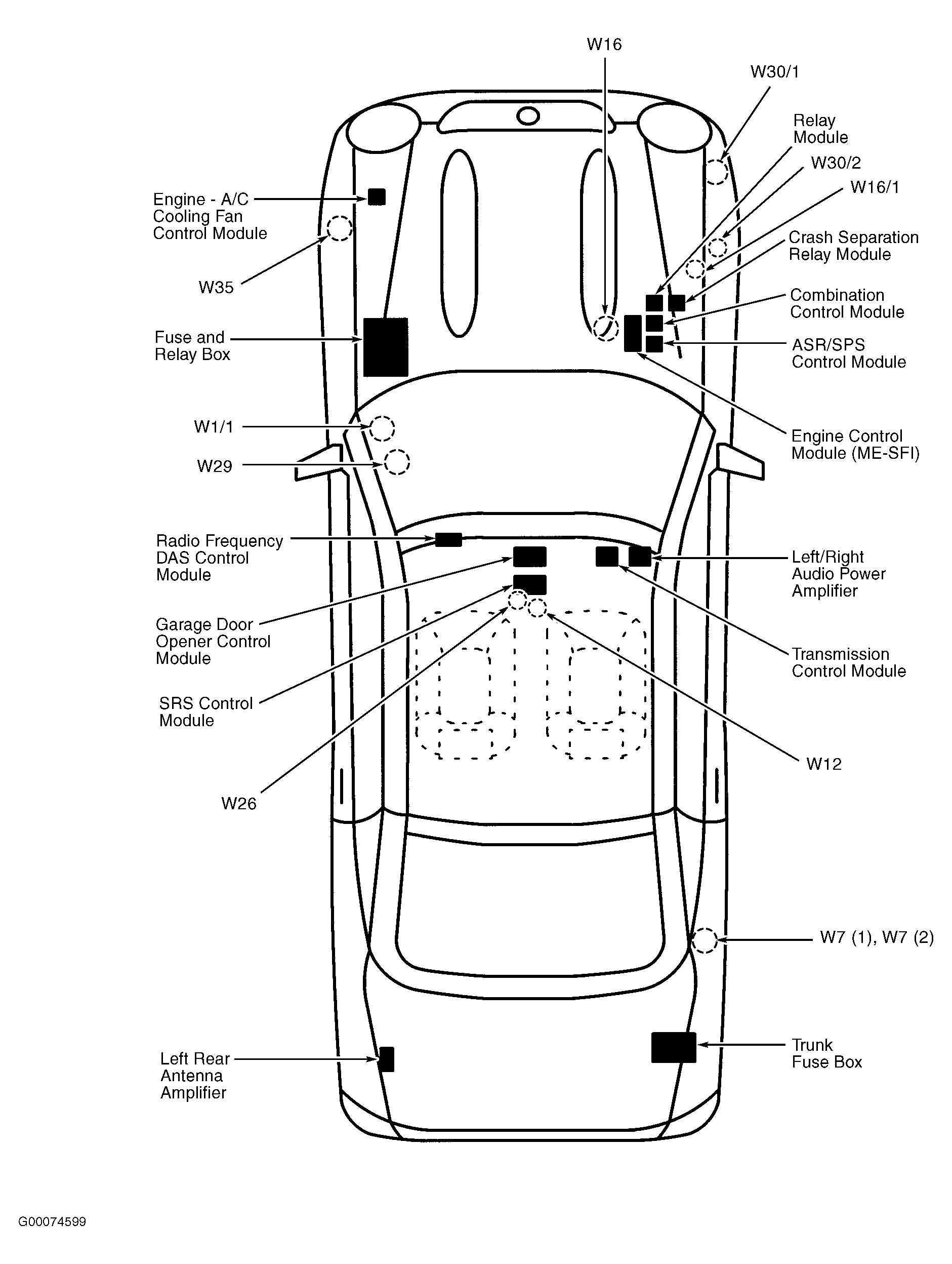 Crash Separation Relay Module In right rear of engine compartment, forward of battery. See Figure .