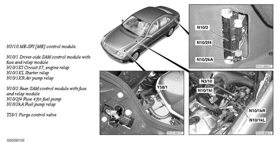 | Driver Side SAM Control Module With Fuse/Relay Module | Left rear of engine compartment. See Figure . |