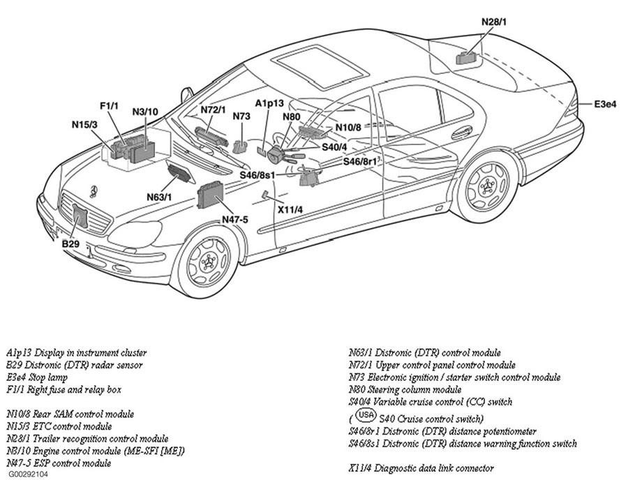 | Distronic (DTR) Control Module | Right front seat. See Figure . |