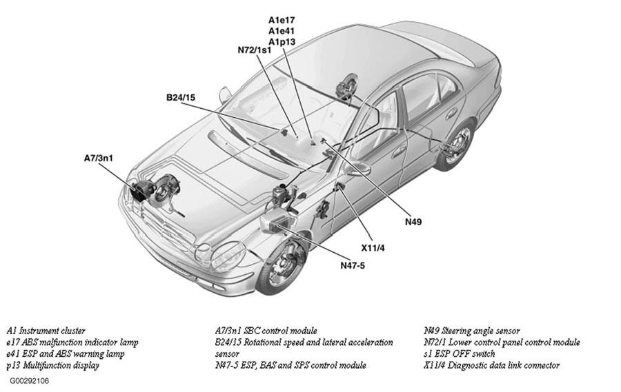 | ESP/SPS/BAS Control Module | Left rear of engine compartment. See Figure . |