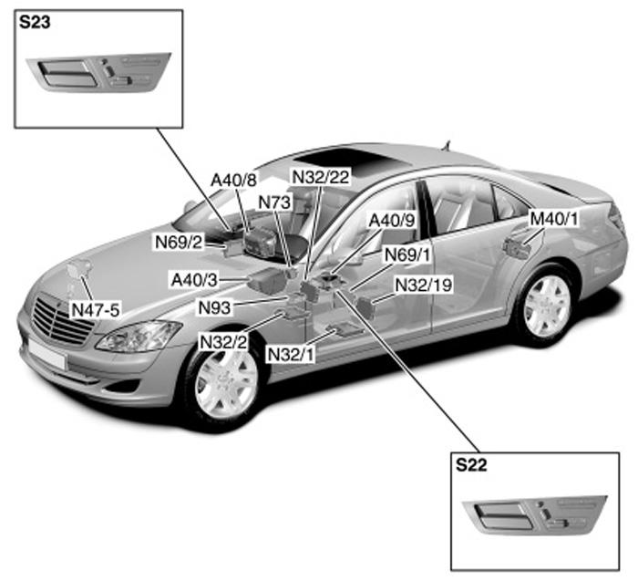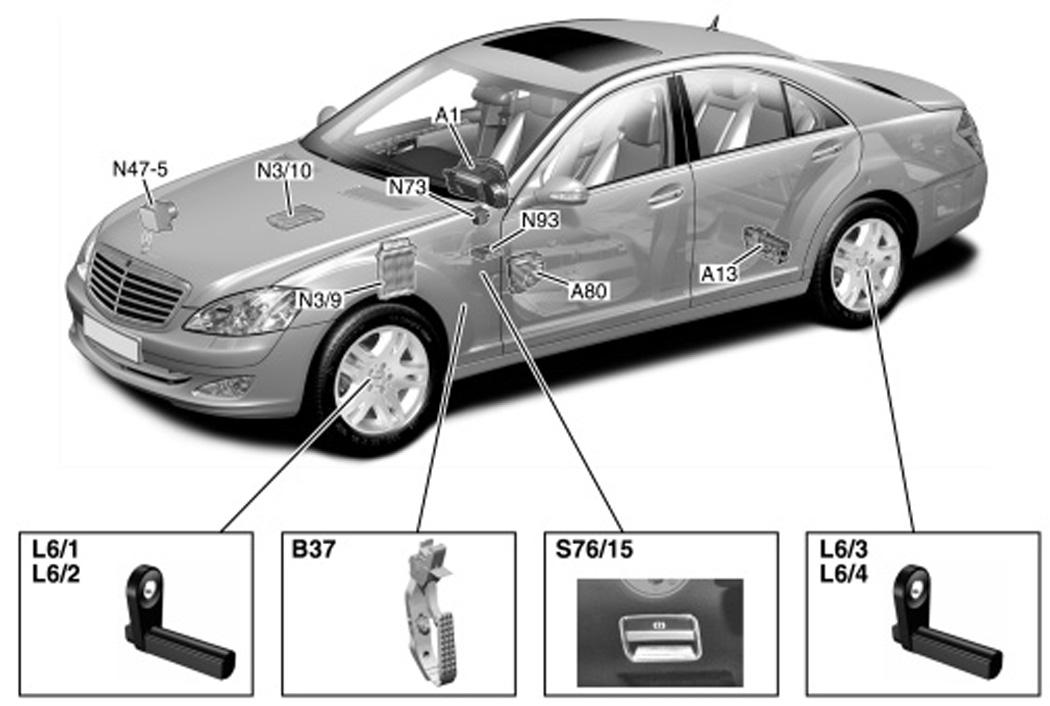 | Vehicle Power Supply Control Unit (N28/1) | Right front of luggage compartment. |