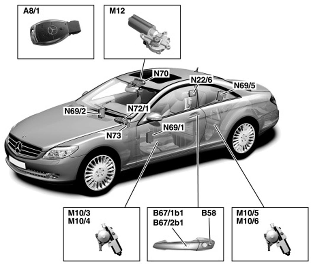| Door Control Module (Left/Right) (N69/1 & N69/2) | In respective door. See Figure. |