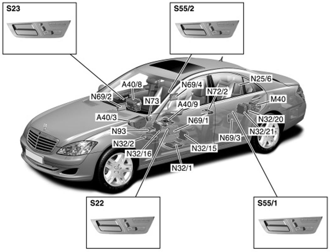 | Left Front Multicontour Backrest Control Unit (N32/15) | In left front seatback. See Figure. |