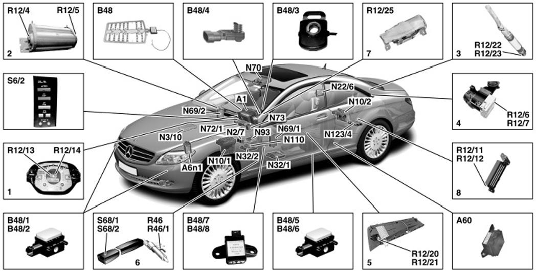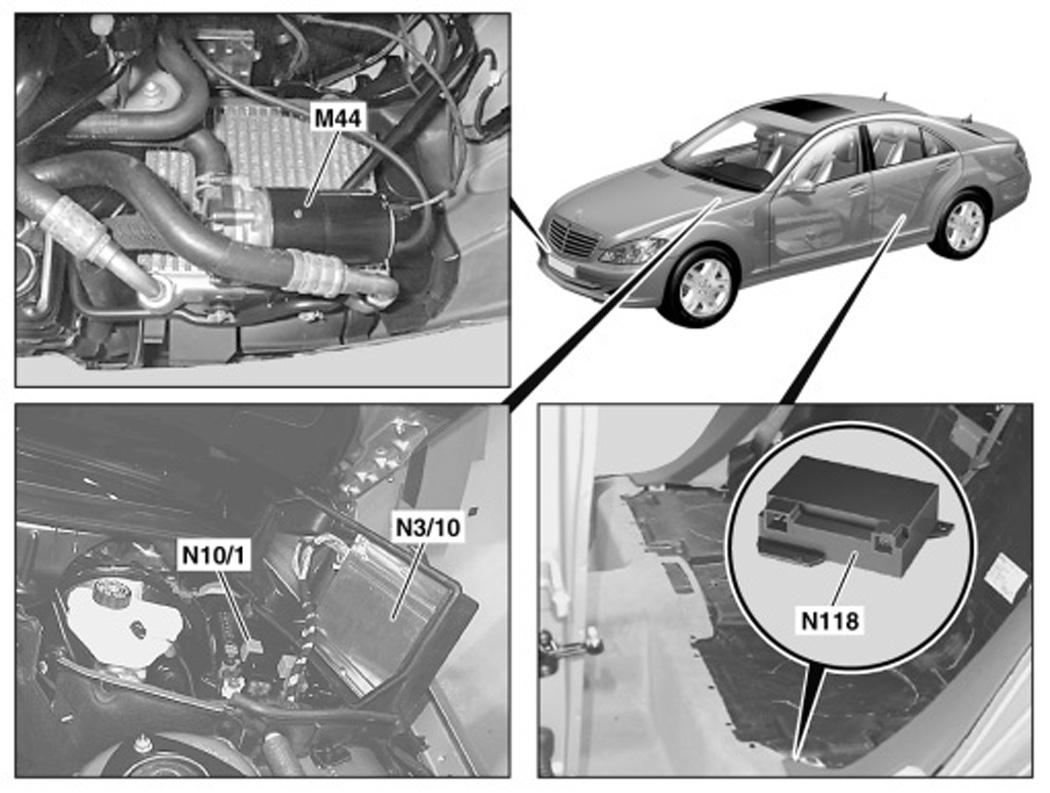 | AAC (KLA) Control Unit (N22/1) | Rear of engine compartment. See Figure. |