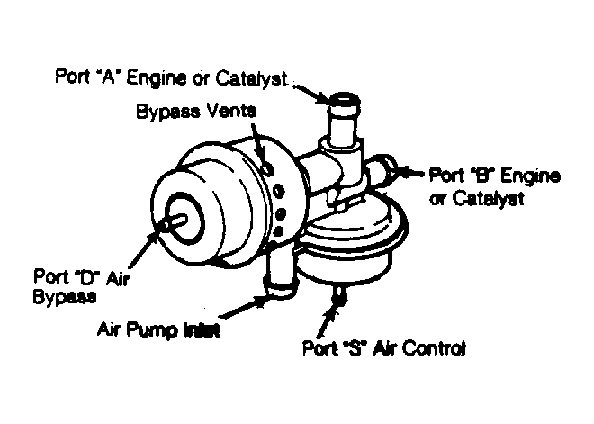 2. With engine at 1500 RPM, air should flow out of port "B." Apply 8-10 in. Hg vacuum to port "S." With engine at 1500 RPM, air should flow from port "A".
