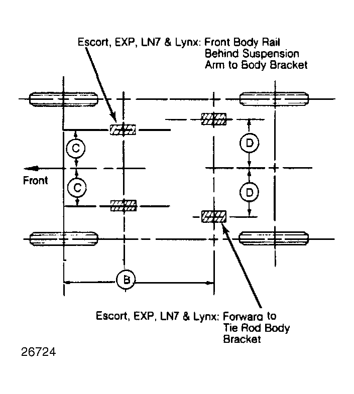 Ensure that hoist manufacturer's instructions are followed. Do not allow hoist or adapters to contact suspension, exhaust or steering components. Frame contact must be made and adapters used to lift vehicle in accordance with Frame Contact Chart and Figure.