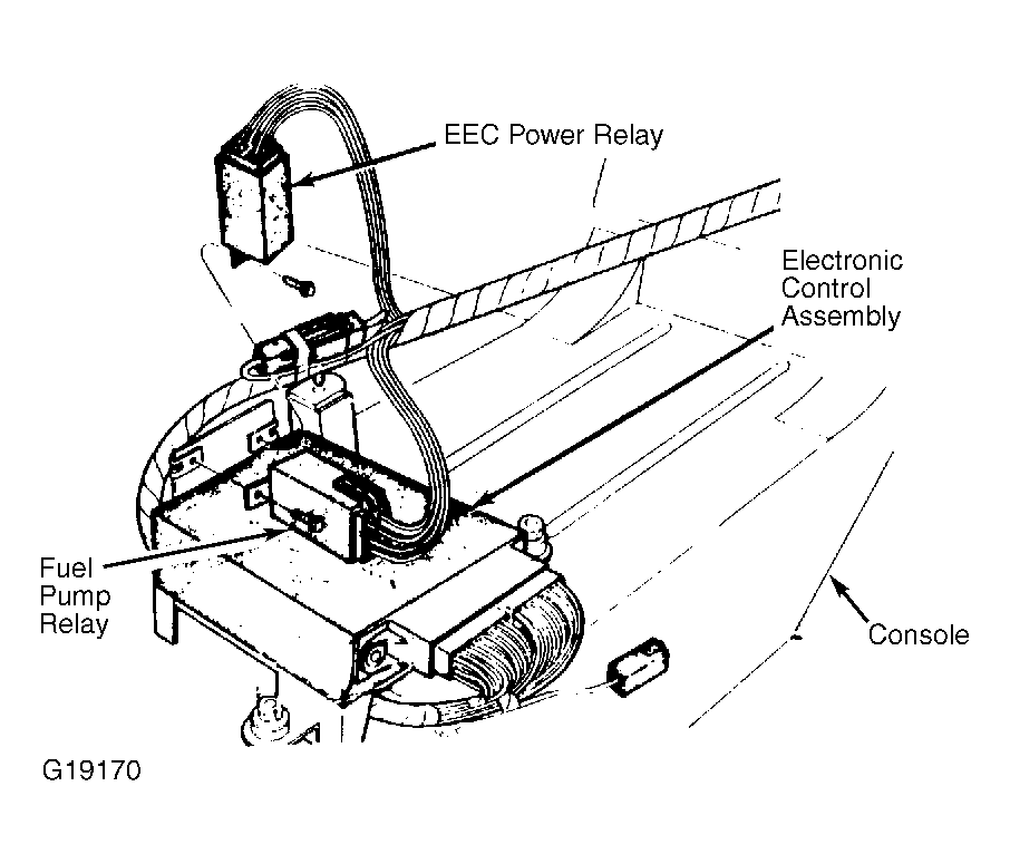 | Electronic Control Assembly (EFI) | Near front of console. See Figure. |