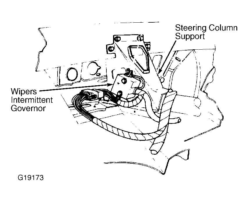 | Wipers Intermittent Governor | On center of instrument panel support brace. See Figure. |